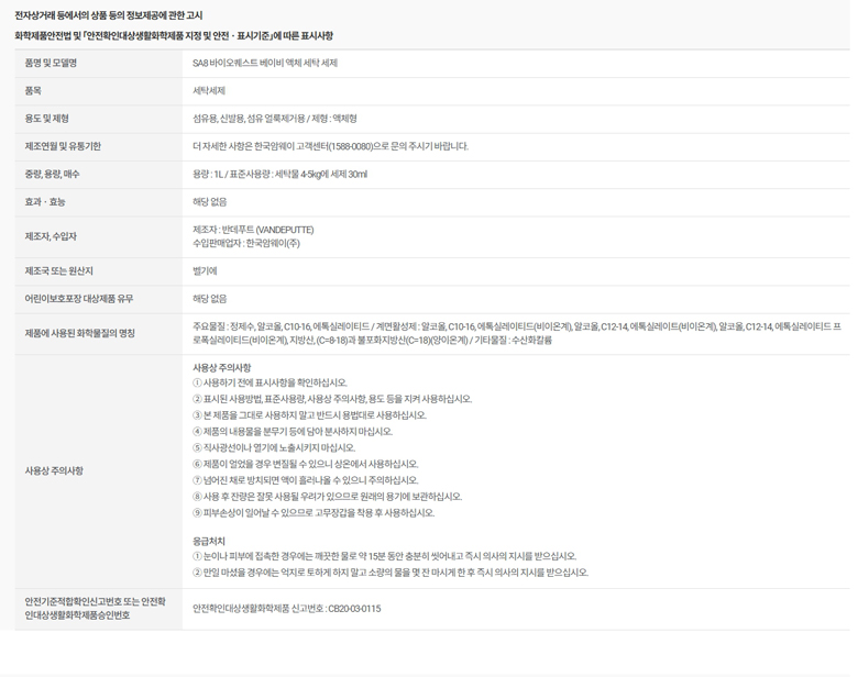 암웨이 SA8 바이오퀘스트 베이비 액체 세탁 세제 1L