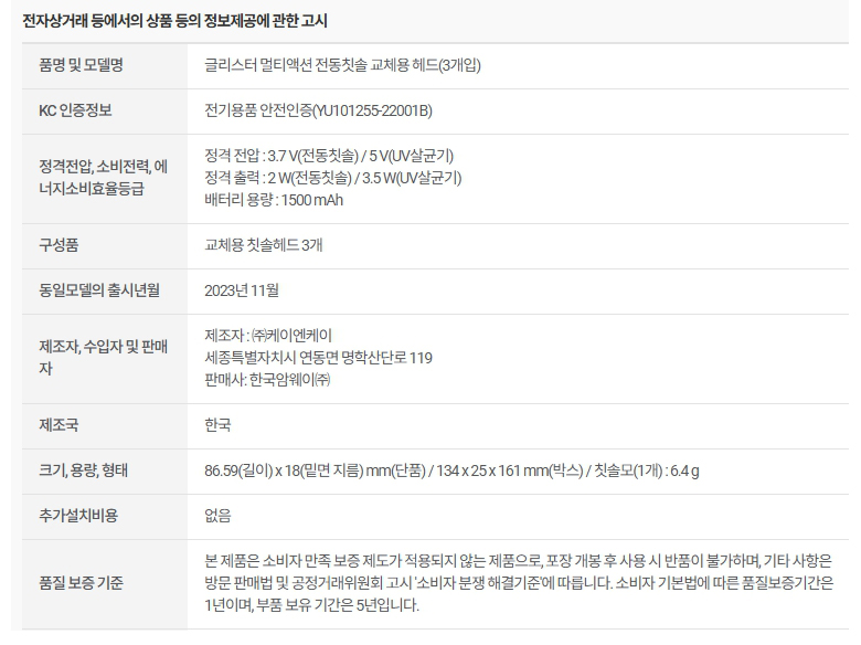 암웨이 글리스터 멀티액션 전동칫솔 교체용 헤드(3개입)
