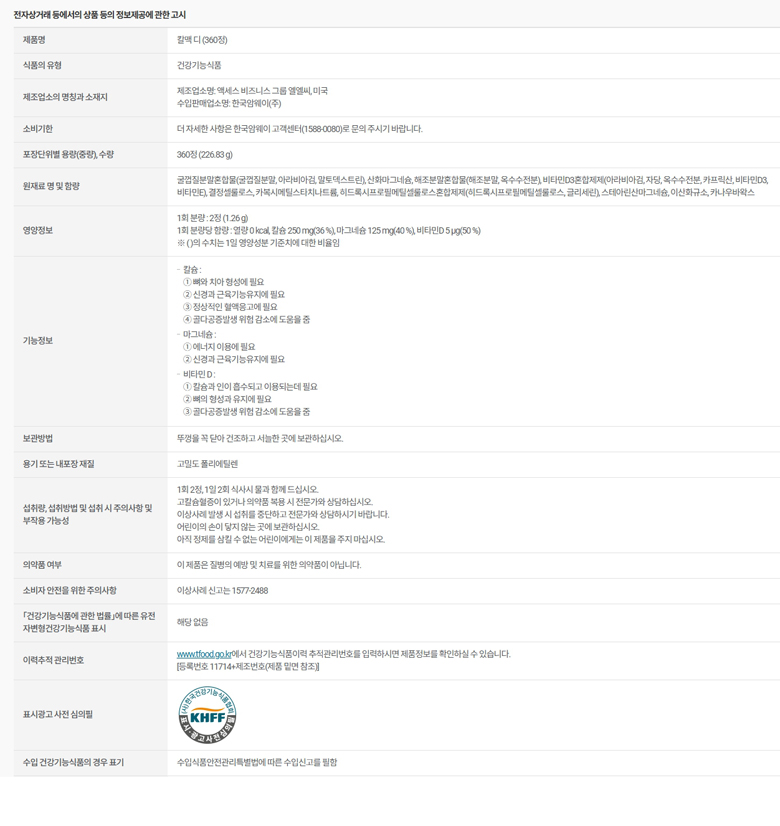 암웨이 칼맥 디 (360정, 90일분)