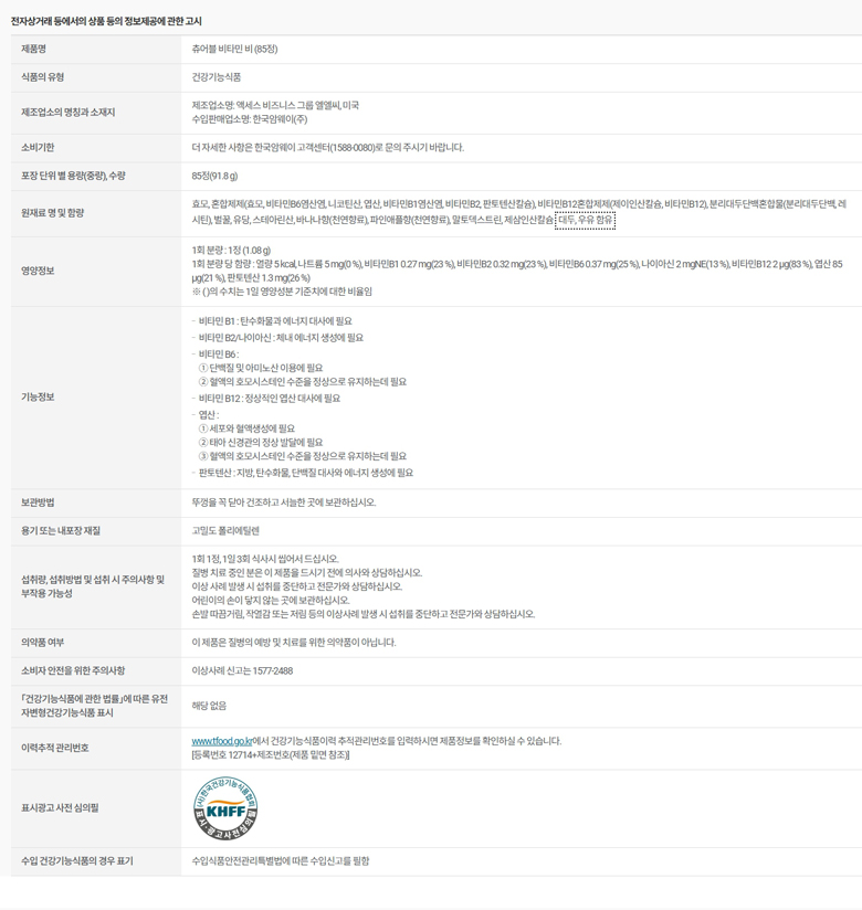 암웨이 츄어블 비타민 비 (85정) - 이스트 비