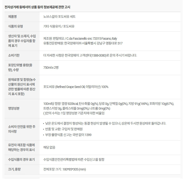 암웨이 노브스갈라 포도씨유 세트 750ml x 2병