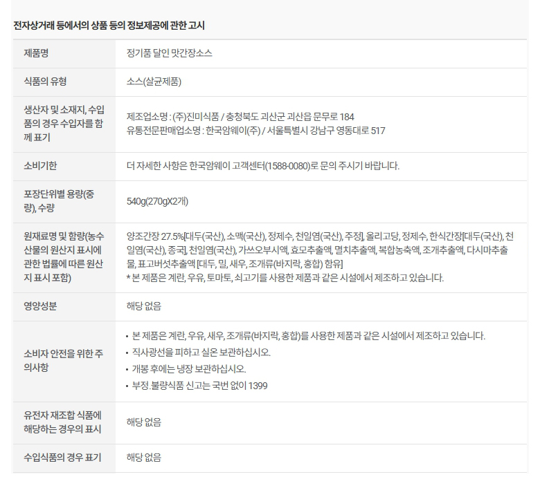 암웨이 정기품 달인 맛간장소스 540g (270g x 2개)