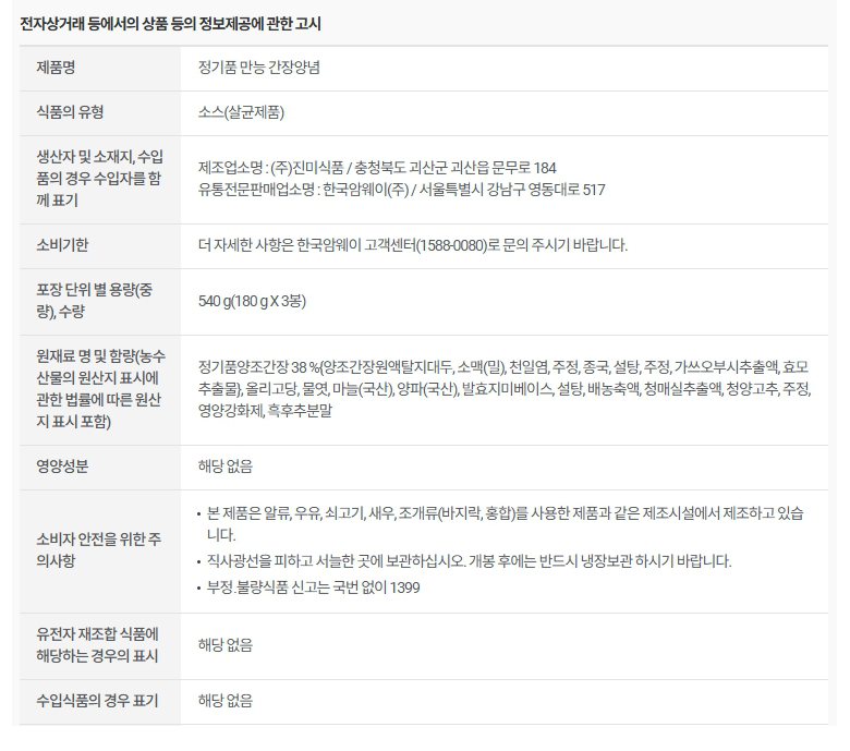 암웨이 정기품 만능 간장양념 540g(180 g X 3봉)