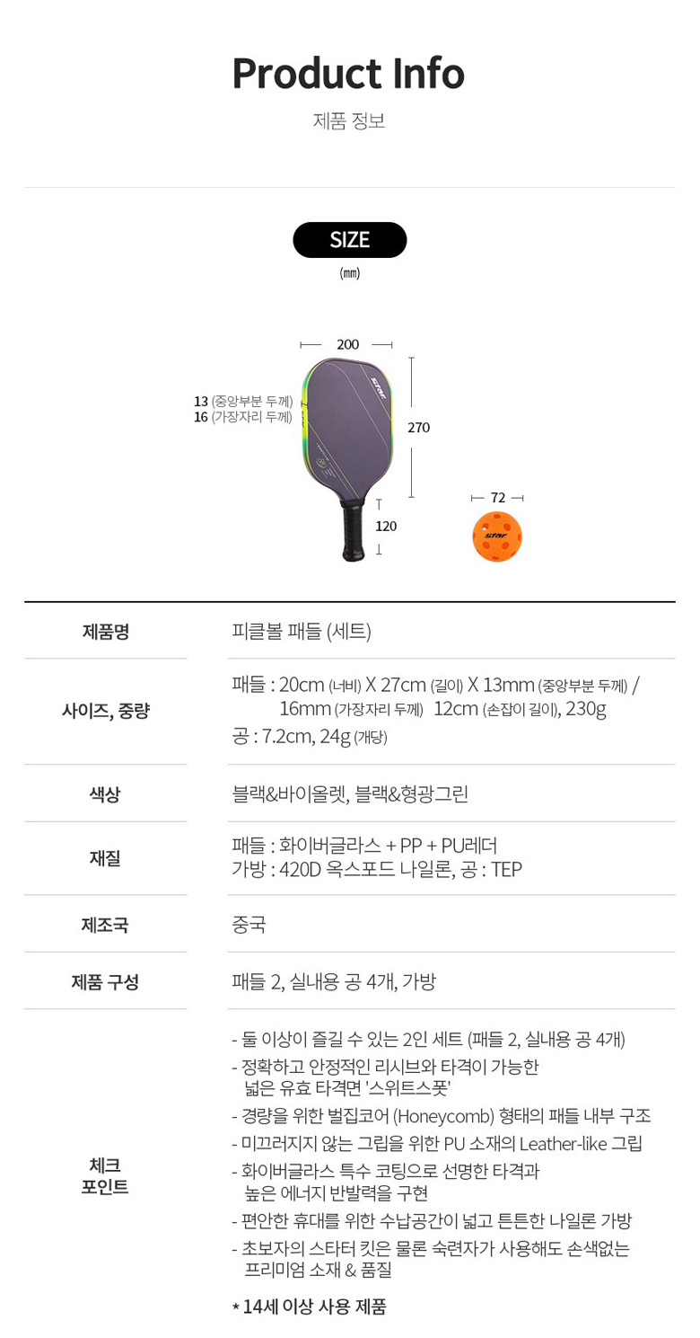 스타 피클볼 패들 (세트)