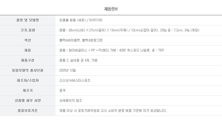 스타스포츠 STAR NXR710S 패드볼세트 피클볼 패들세트 피크볼