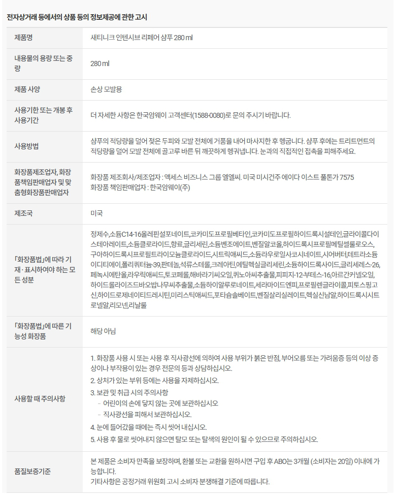 Amway 헤어&스캘프케어 손상모발 단백질 집중 케어