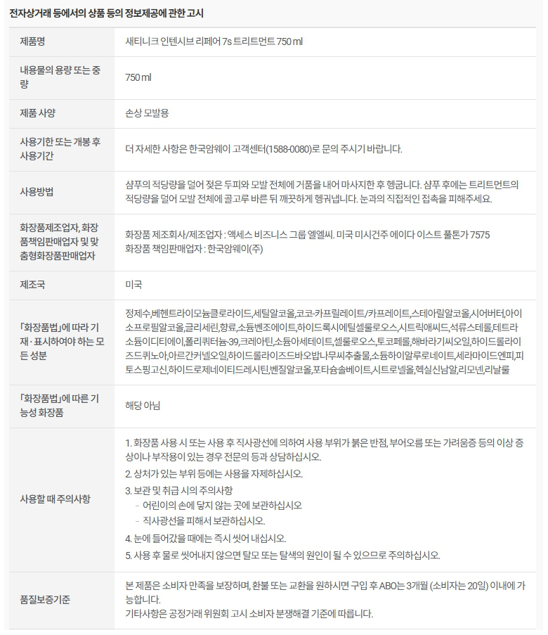 Amway 헤어&스캘프케어 손상모발 단백질 집중 케어 손상 모발용