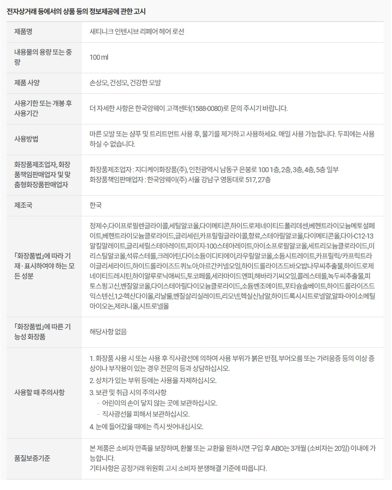 암웨이 새티니크 인텐시브 리페어 헤어 로션 100 ml