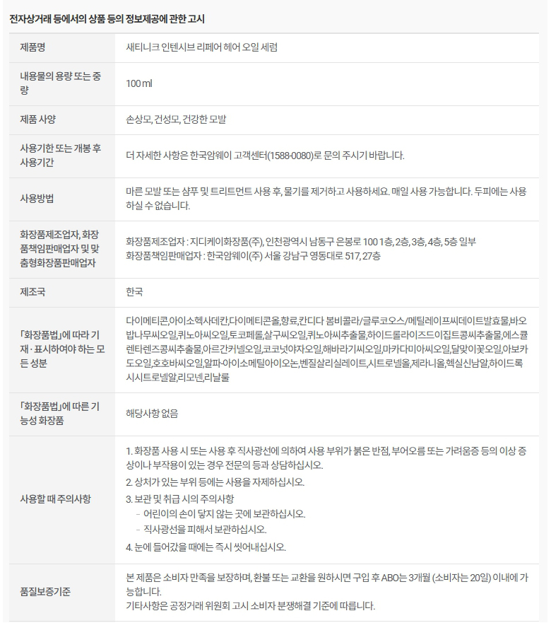암웨이 새티니크 인텐시브 리페어 헤어 오일 세럼 100 ml
