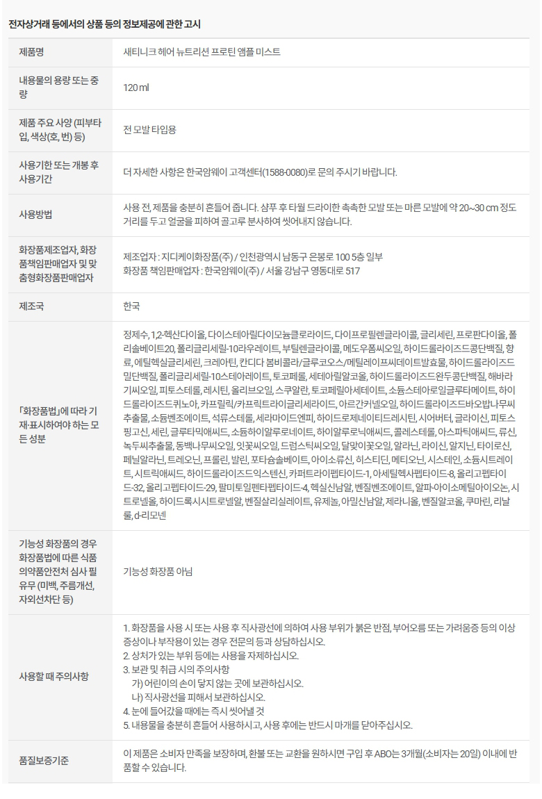암웨이 새티니크 헤어 뉴트리션 프로틴 앰플 미스트 120 ml