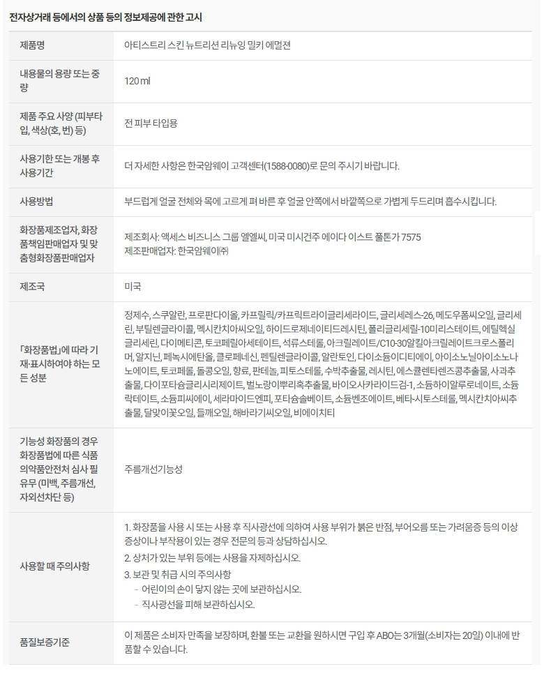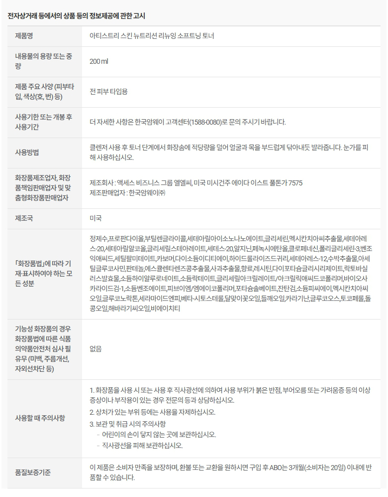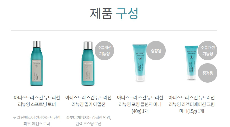 암웨이 아티스트리 스킨 뉴트리션 리뉴잉 선물세트(토너+에멀젼+클렌저+크림)