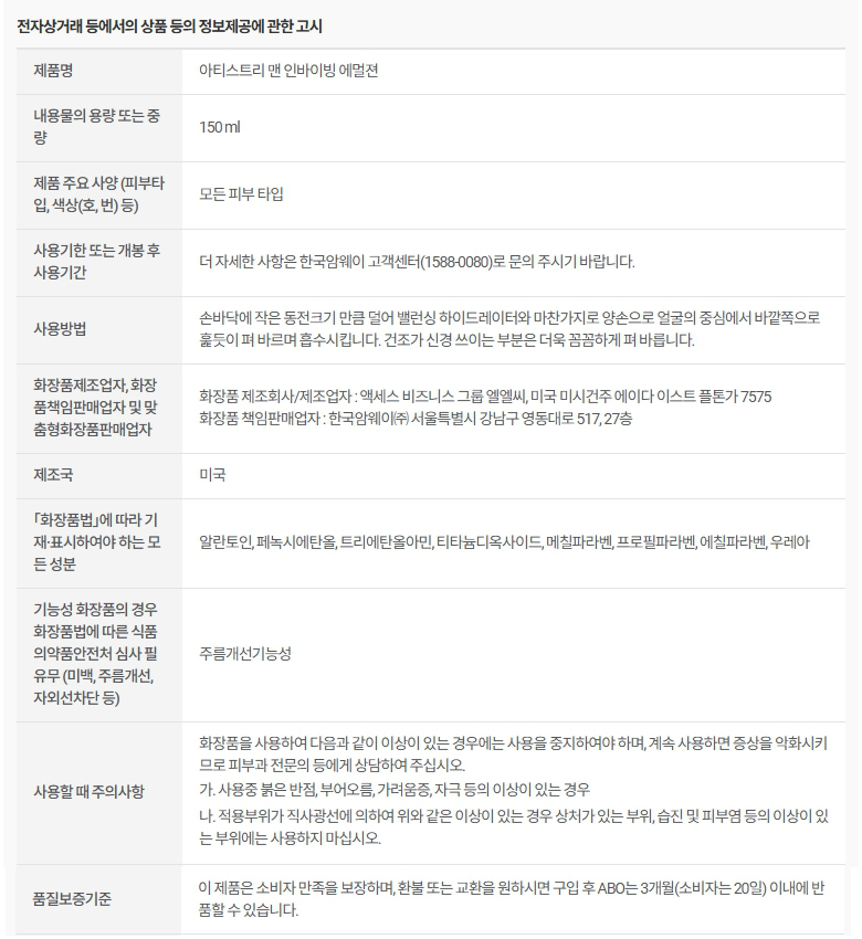 암웨이 아티스트리 맨 선물세트(토너+에멀젼)