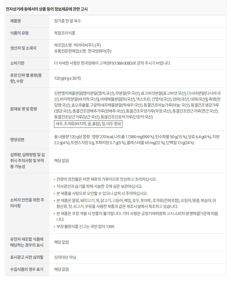 암웨이 정기품 한 알 육수 120g(4g x 30개)