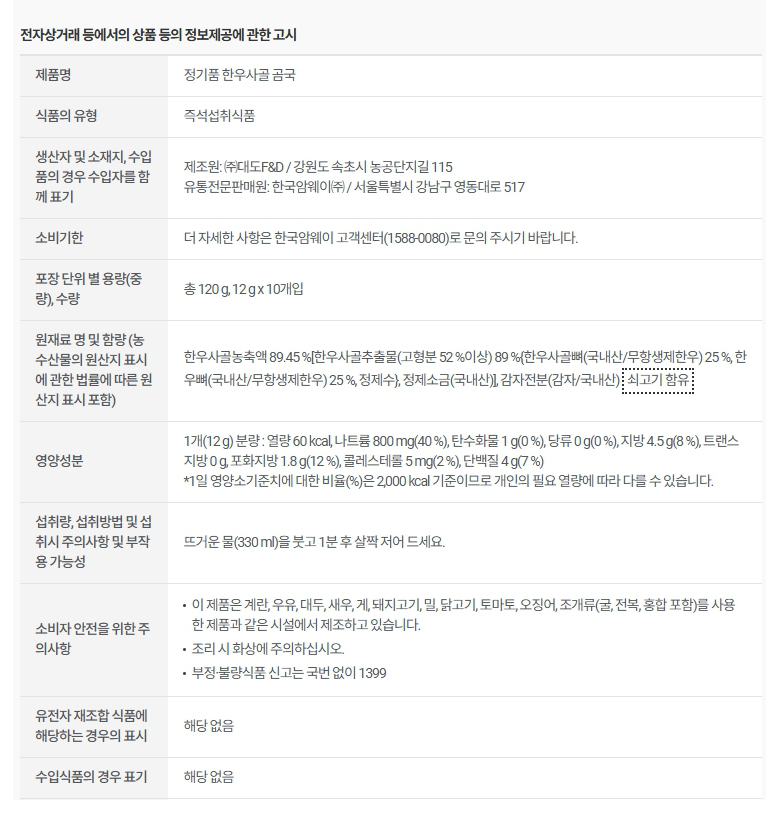 암웨이 정기품 한우사골 곰국 총120g(12g x 10개입)