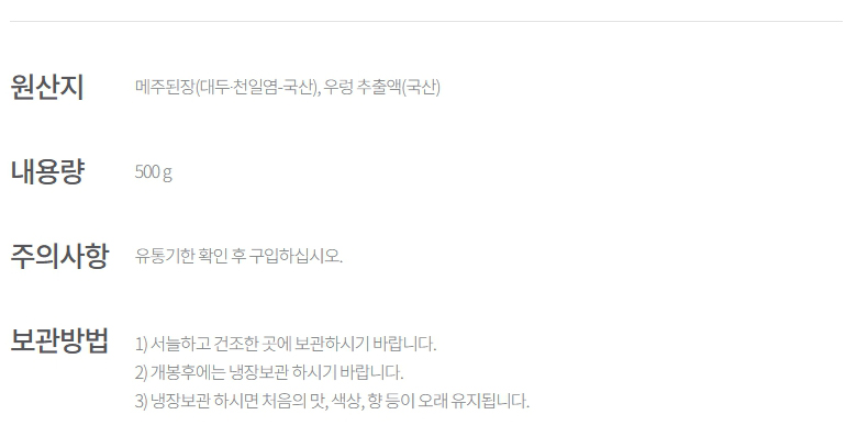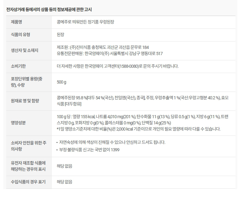 암웨이 콩메주로 띄워만든 정기품 우렁된장 500g