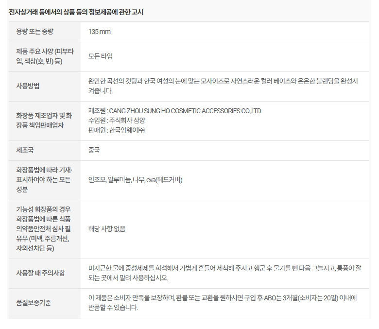 ▣ 상품의 교환/반품/환불 및 피해보상 등의 처리기준은 재정경제부고시 소비자피해보상규정에 의합니다.