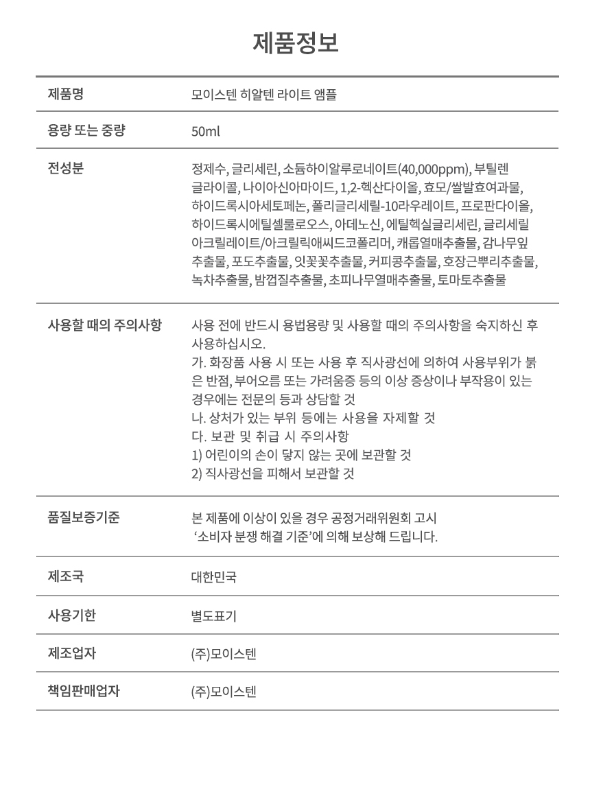 저분자 히알루론산 세럼 모이스텐 히알텐 앰플 50ml