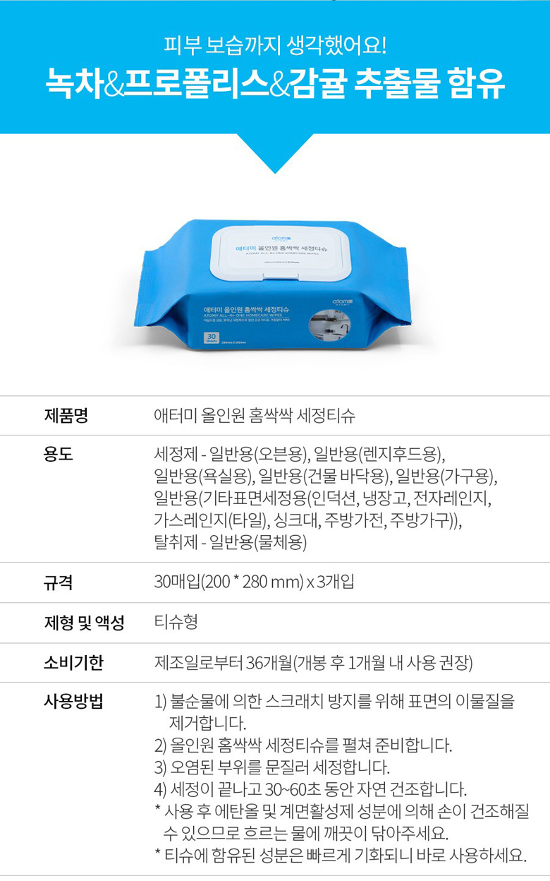 애터미 올인원 홈싹싹 세정티슈(30매입*3개입)