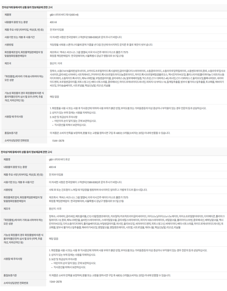 암웨이 g&h 너리쉬 바디케어 선물세트 (바디워시 + 바디로션)