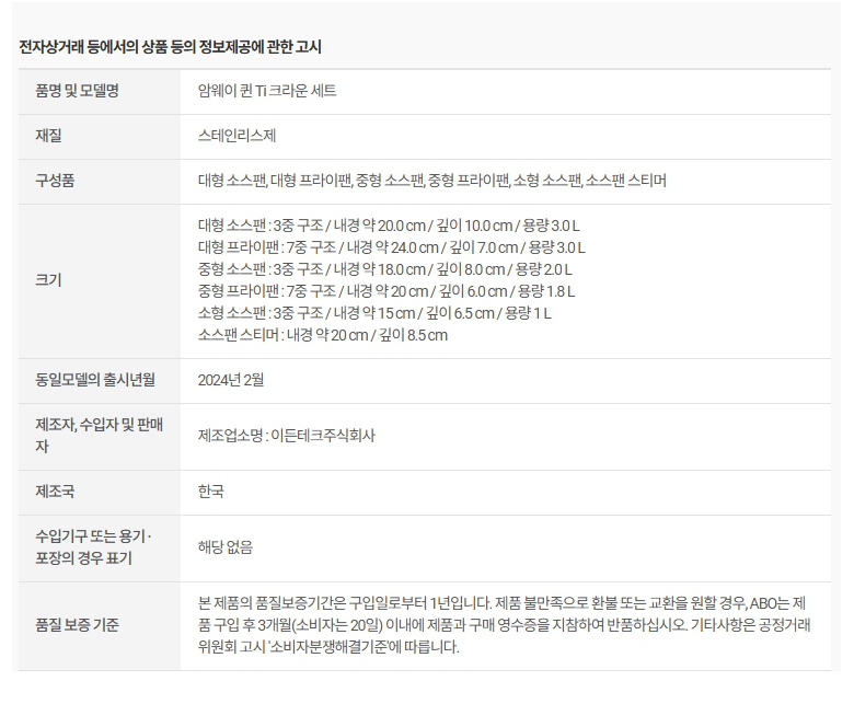 암웨이 퀸 Ti 크라운 세트