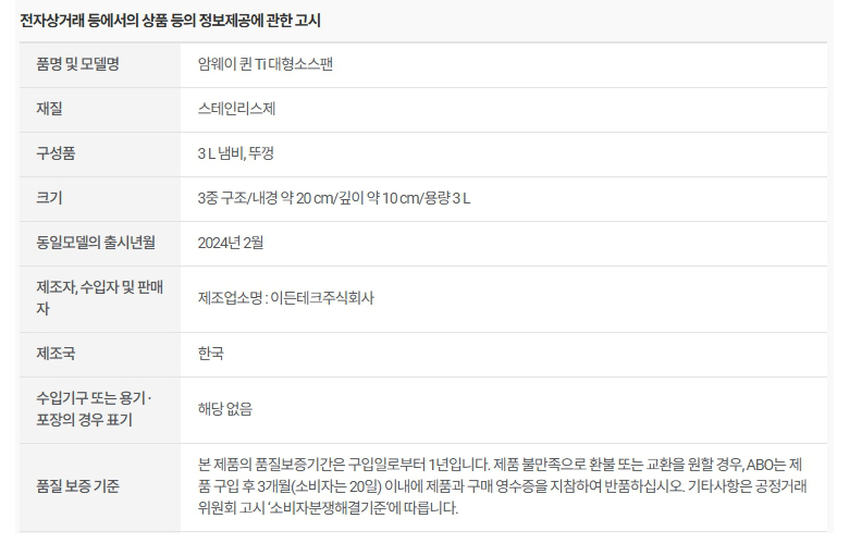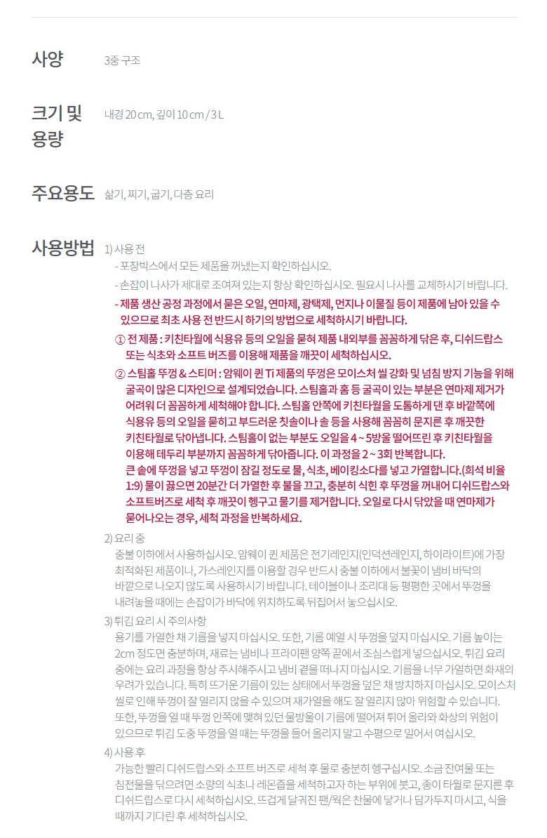 암웨이 퀸 Ti 대형 소스팬 3L