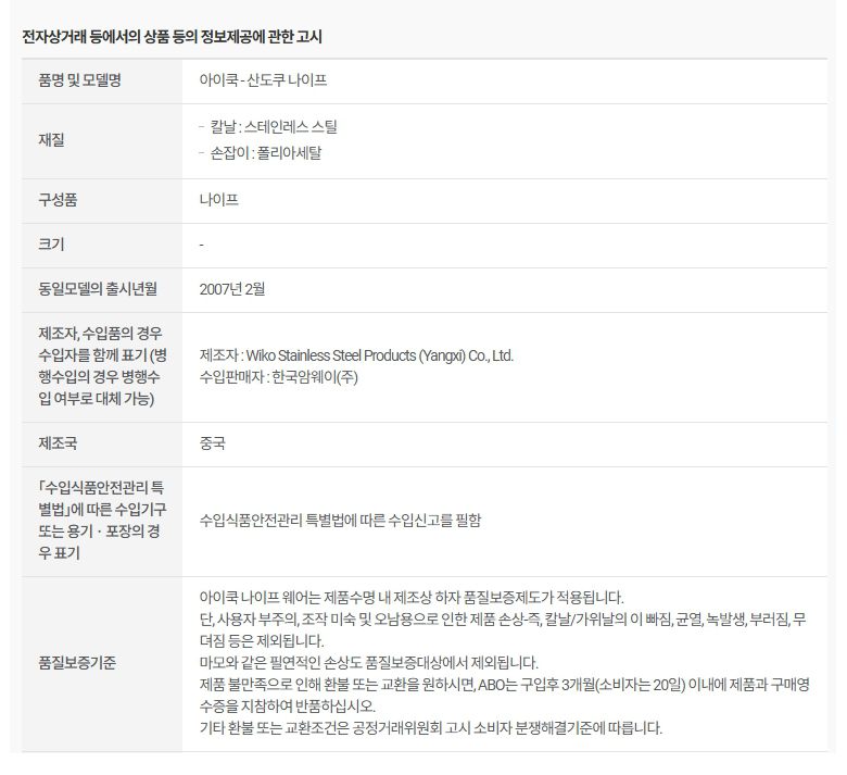 암웨이 아이쿡 - 산도쿠 나이프