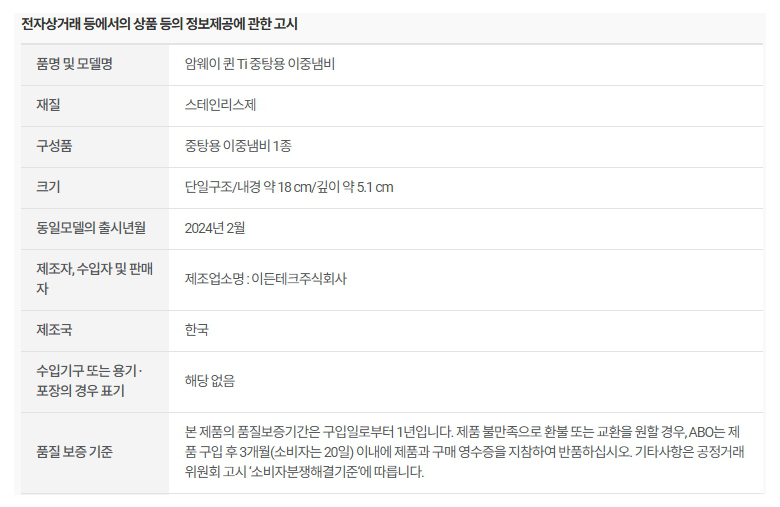 암웨이 퀸 Ti 중탕용 이중냄비
