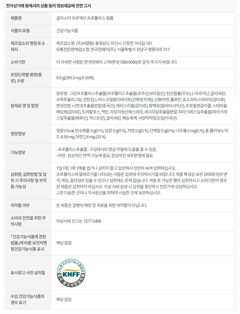 암웨이 글리스터 프로액션 프로폴리스 필름