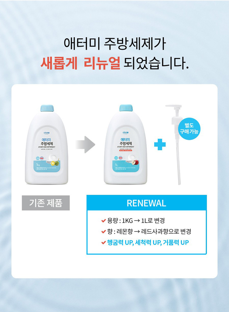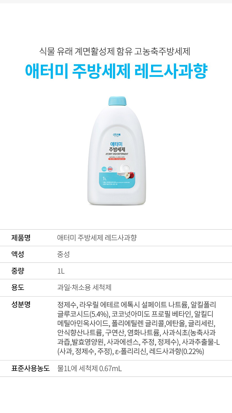 애터미 주방세제 1L 레드사과향(펌프포함)