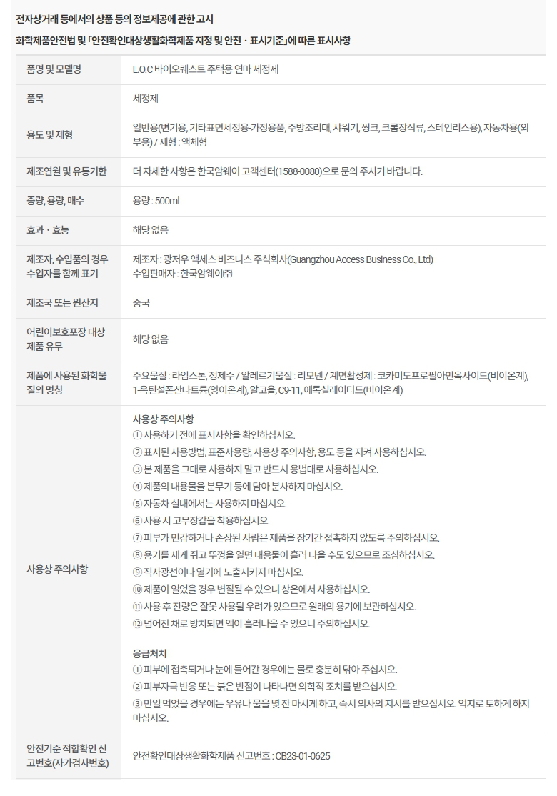 암웨이 L.O.C 바이오퀘스트 주택용 연마 세정제 500ml