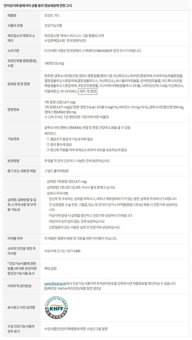 Amway NUTRILITE 뉴트리라이트 기능성영양제 건강기능식품 관절 연골