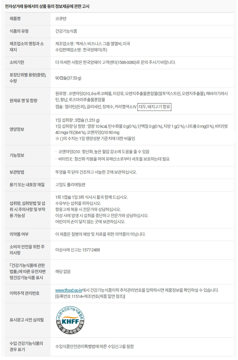 암웨이 코큐텐 (90캡슐, 30일분)