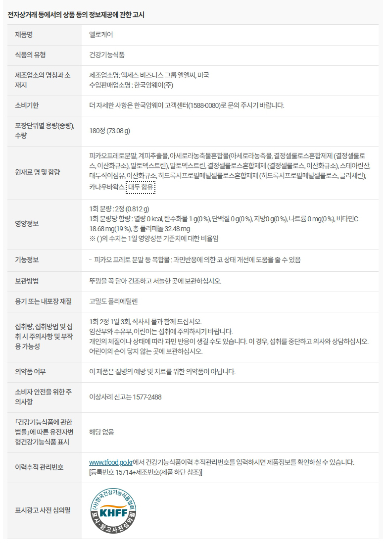 Amway NUTRILITE 뉴트리라이트 기능성영양제 건강기능식품 코 과민반응 개선