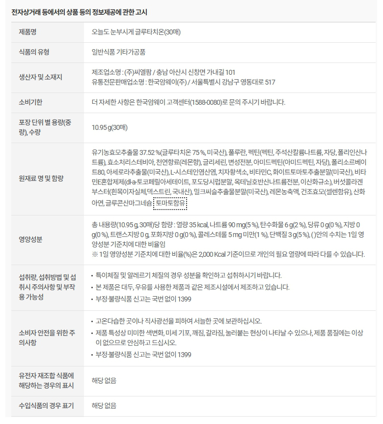 암웨이 오늘도 눈부시게 글루타치온 (30매)