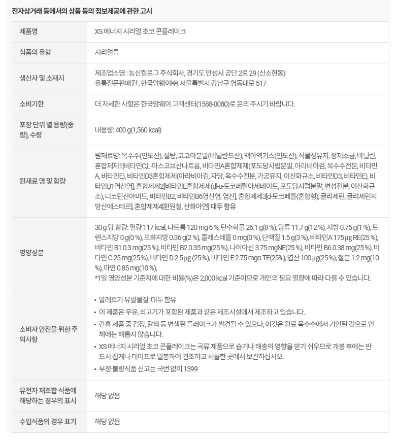 암웨이 XS 에너지 시리얼 초코 콘플레이크 (400g)