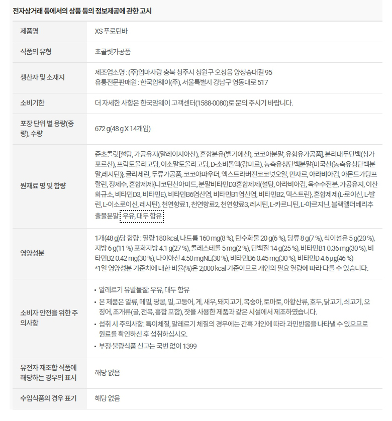 암웨이 XS 푸로틴 바 (14개)