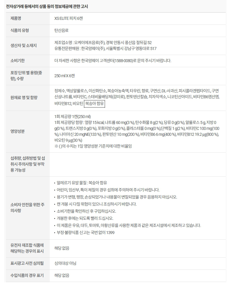 암웨이 XS ELITE 피치 6캔