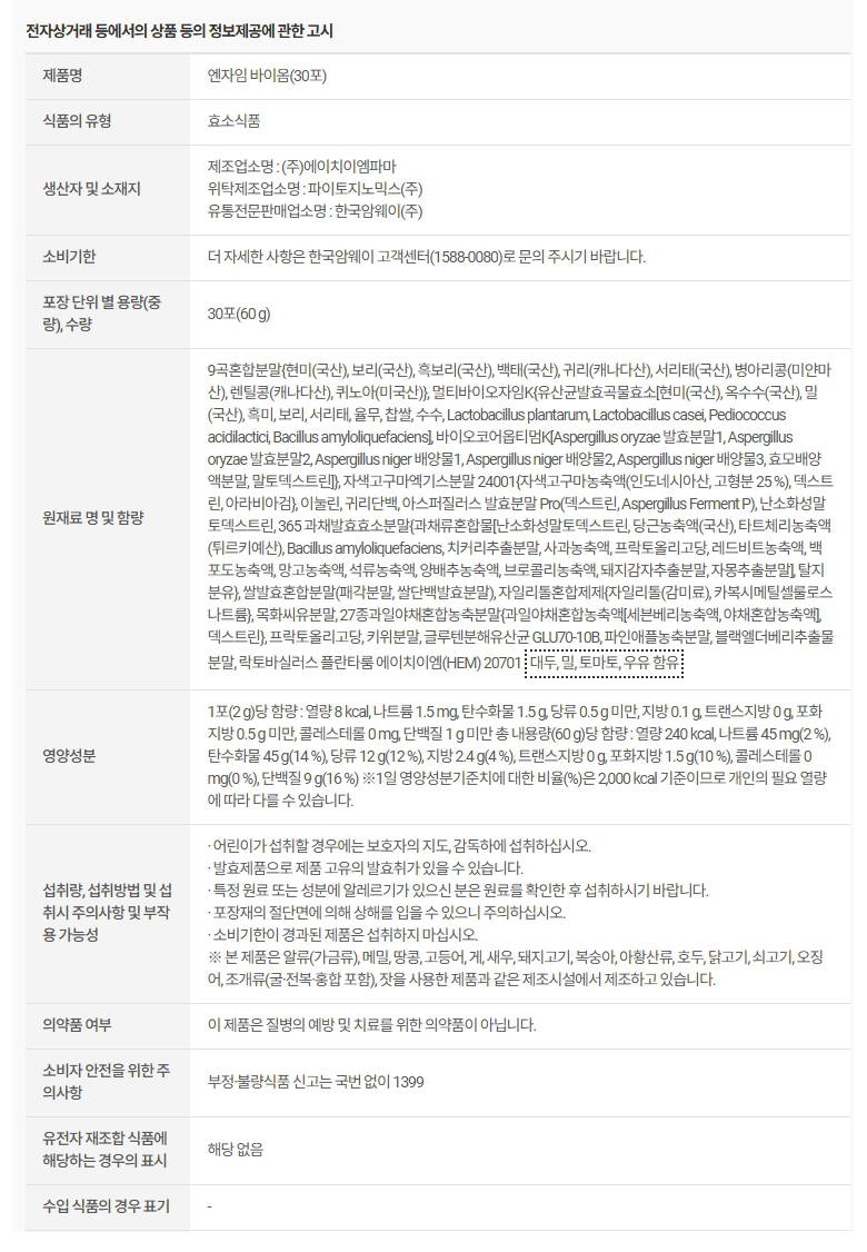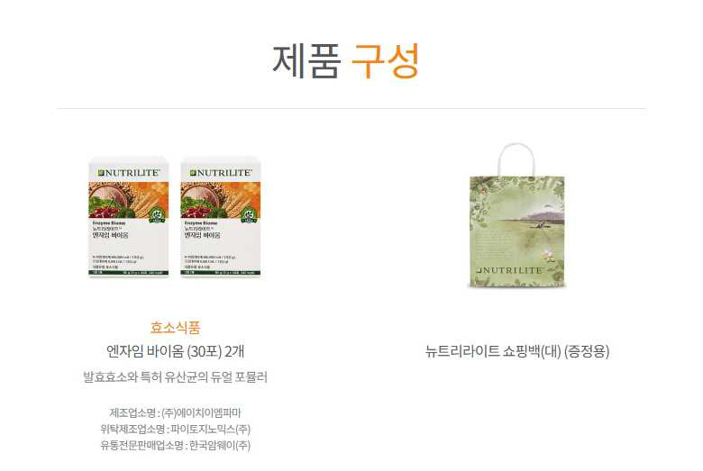 암웨이 엔자임 바이옴 선물세트(엔자임 바이옴 (30포) 2개)