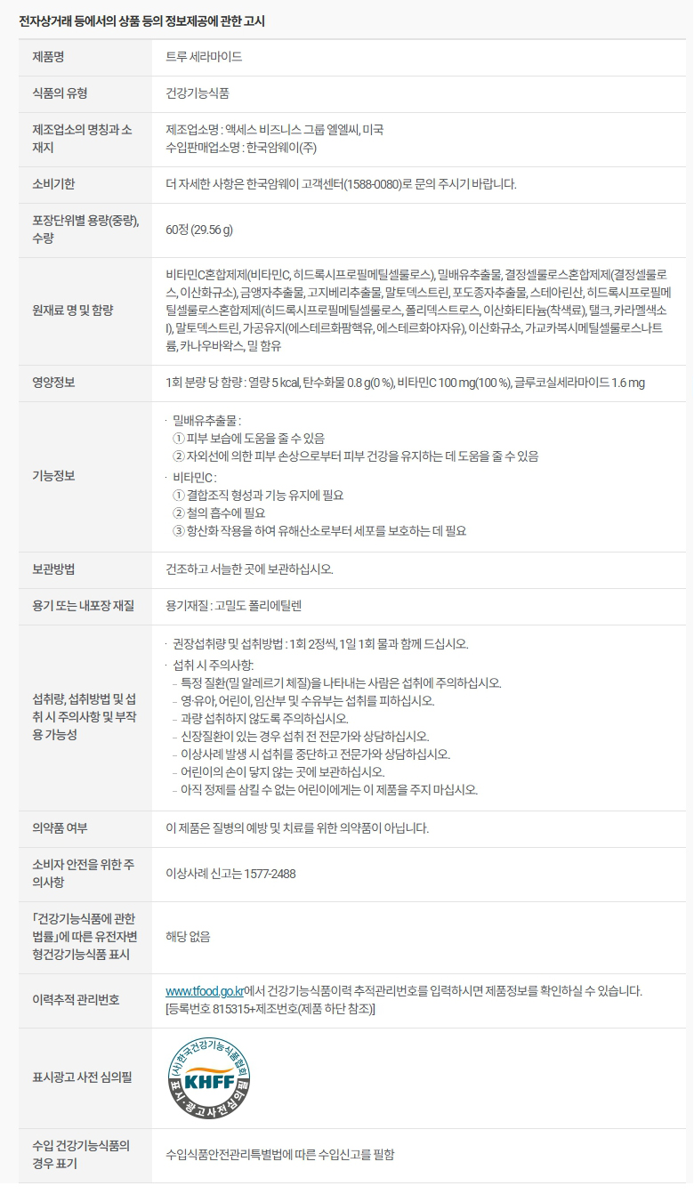 암웨이 트루 세라마이드 60정