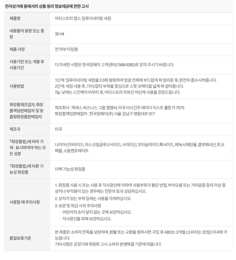 암웨이 아티스트리 랩스 일루미네이팅 세럼 30ml