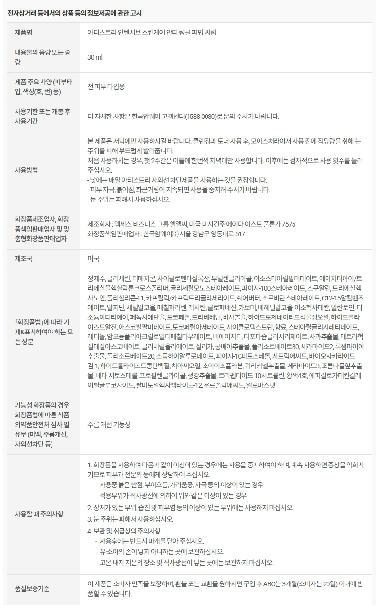 암웨이 아티스트리 인텐시브 스킨케어 안티 링클 퍼밍 씨럼 30ml