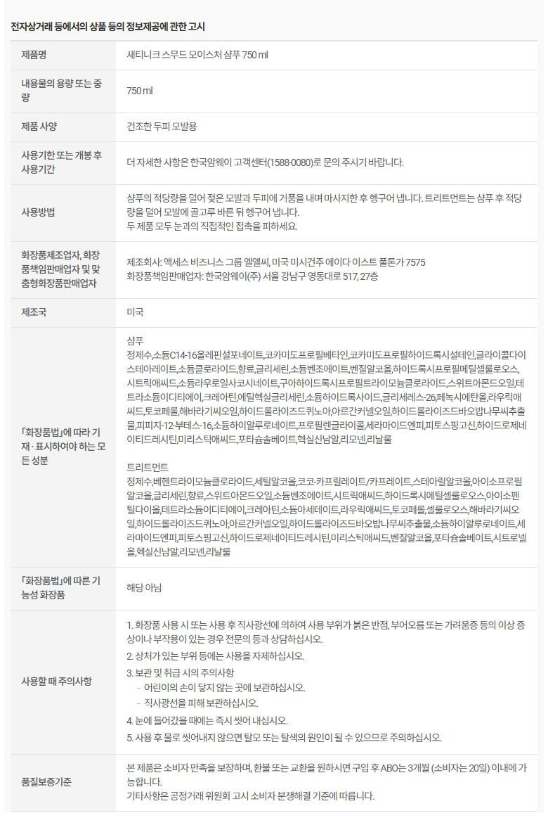 암웨이 새티니크 스무드 모이스처 샴푸 750 ml