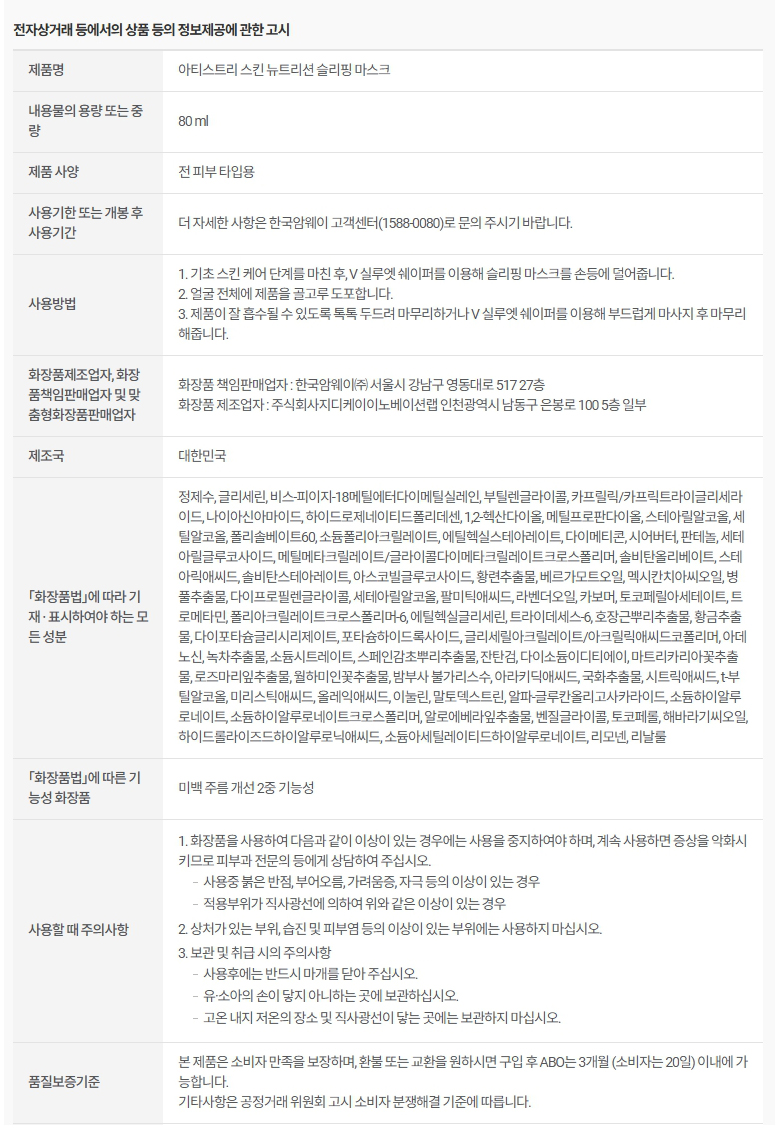 암웨이 아티스트리 스킨 뉴트리션 슬리핑 마스크 80ml