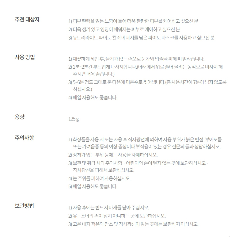 Amway NUTRILITE 뷰티 화장품 마스크팩 탄력 영양 케어