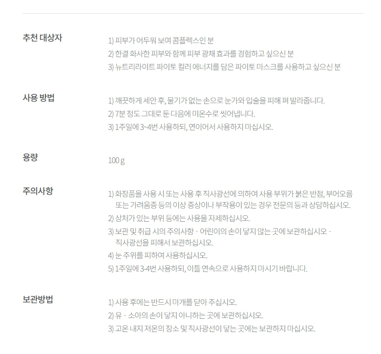 Amway NUTRILITE 뷰티 화장품 마스크팩 투명 광채 케어