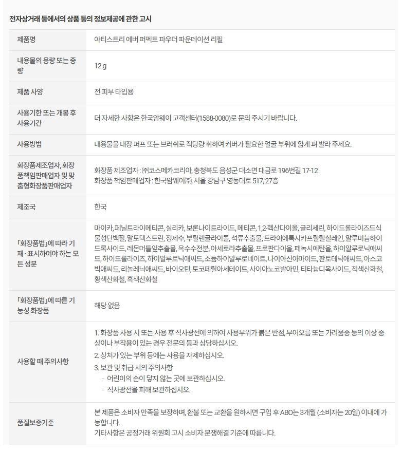 암웨이 아티스트리 에버 퍼펙트 파우더 파운데이션 리필