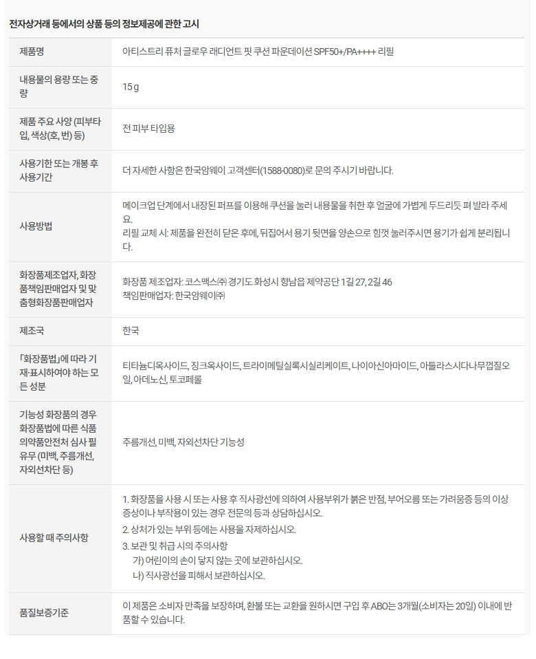 암웨이 아티스트리 퓨처 글로우 래디언트 핏 쿠션 파운데이션 리필 SPF50+/PA++++