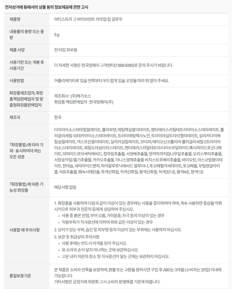 암웨이 아티스트리 고 바이브런트 라잇업 립 글로우