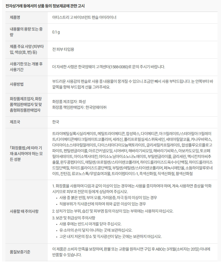 암웨이 아티스트리 고 바이브런트 펜슬 아이라이너