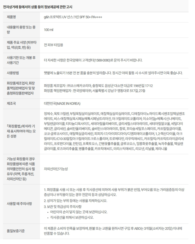 암웨이 g&h 프로텍트 UV 선스크린 100ml SPF 50+ PA++++
